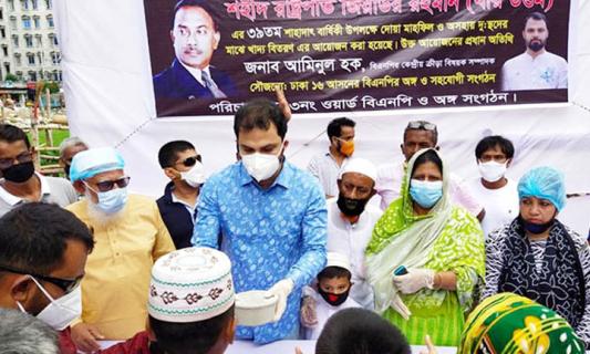 ফুটবলার আমিনুল হকের খাদ্য বিতরণ