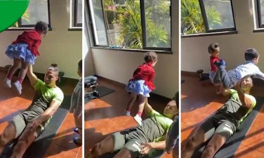 ছেলে-মেয়েকে নিয়ে রোনালদোর ফিটনেস ট্রেনিং