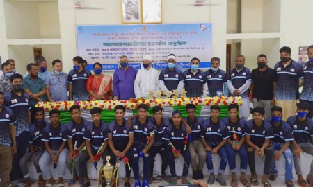 সিলেট জেলা চ্যাম্পিয়ন ফুটবলারদের সংবর্ধনা প্রদান
