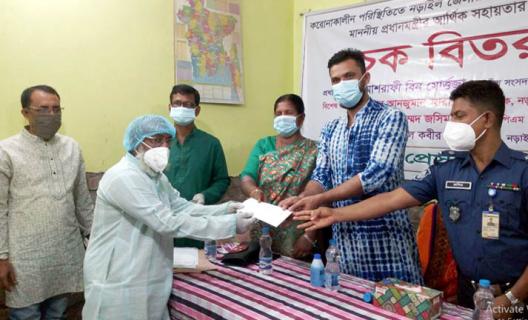সাংবাদিকদের মধ্যে চেক বিতরণ মাশরাফির