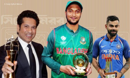 সিরিজ সেরায় শচীন-কোহলির পরেই সাকিব