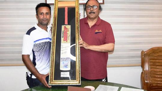 রাসিক মেয়রকে শচীন-লারার ব্যাট উপহার