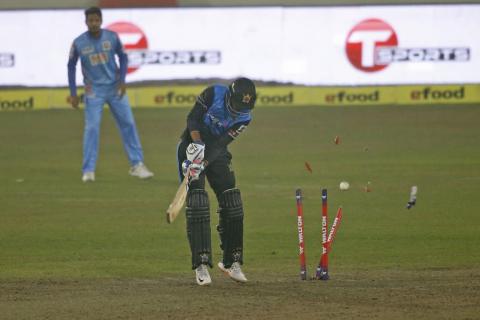 মোস্তাফিজের বলে স্টাম্প টুকরো টুকরো