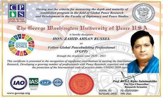ওয়াশিংটন ইউনিভার্সিটির ফেলো হলেন ক্রীড়া প্রতিমন্ত্রী