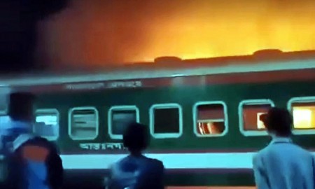 টাঙ্গাইলে স্টেশনে দাঁড়িয়ে থাকা ট্রেনে আগুন