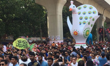 শান্তিময় পৃথিবীর প্রত্যাশায় শেষ হলো চারুকলার মঙ্গল শোভাযাত্রা