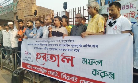 হরতালের সমর্থনে সিলেটে বামজোটের মিছিল-সমাবেশ