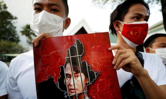 ভোরে মুক্ত মিয়ানমারে বিক্ষোভকারীরা