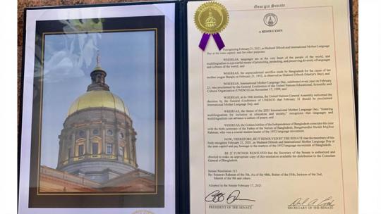 জর্জিয়ার সিনেটে বাংলা ভাষার স্বীকৃতি