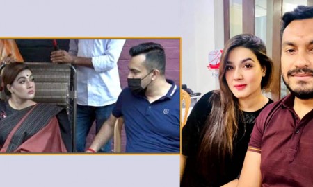 স্বামীকে সঙ্গে নিয়ে শুটিংয়ে মাহি