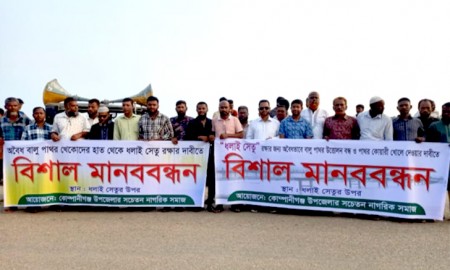 পাথর কোয়ারি খোলার দাবিতে ধলাই সেতুতে মানববন্ধন