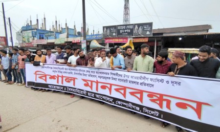 কোম্পানীগঞ্জে শিক্ষার্থীদের উপর মামলার প্রতিবাদে মানববন্ধন