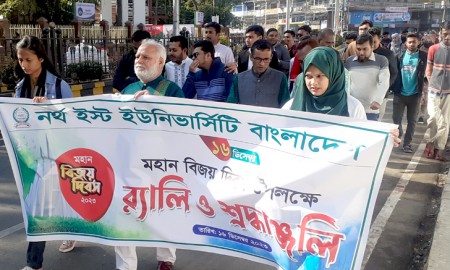 বর্ণিল আয়োজনে নর্থ ইস্ট ইউনিভার্সিটির বিজয় দিবস উদযাপন