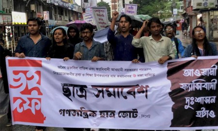 তফসিল প্রত্যাখ্যানসহ ৬ দফা দাবিতে সিলেটে গণতান্ত্রিক ছাত্রজোটের মিছিল ও সমাবেশ