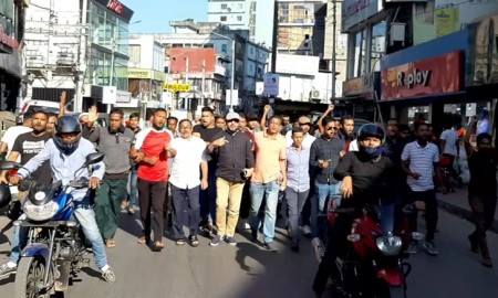 অবরোধের দ্বিতীয় দিনে মিফতাহ সিদ্দিকীর নেতৃত্বে নগরে মিছিল