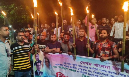 অবরোধের সমর্থনে নগরে স্বেচ্ছাসেবক দলের মশাল মিছিল