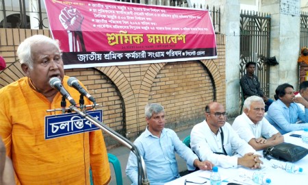 নুন্যতম মজুরি ২০ হাজার টাকাসহ ১১দফা দাবিতে সিলেটে শ্রমিক সমাবেশ