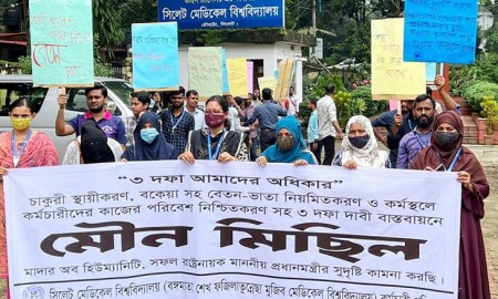 সিলেট মেডিকেল বিশ্ববিদ্যালয়ের কর্মচারীদের মৌন মিছিল
