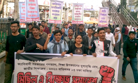 ‘ফ্যাসিস্ট সরকারের’ পদত্যাগসহ ১৩ দফা দাবিতে সিলেটে গণতান্ত্রিক ছাত্র জোটের মিছিল ও সমাবেশ