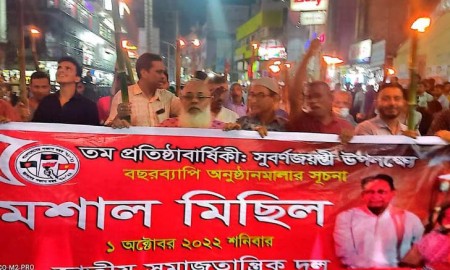সারাদেশে মশাল মিছিলে জাসদের বছরব্যাপী সুবর্ণজয়ন্তীর সূচনা