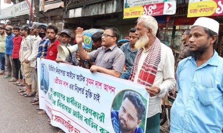 ঝুমন ও প্রীতম দাশের মুক্তির দাবিতে বাসদের সমাবেশ ও মানববন্ধন