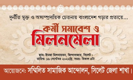 সম্মিলিত সামাজিক আন্দোলনের কর্মী সভা শুক্রবার