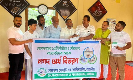 বন্যার্তদের মধ্যে গোলাপগঞ্জ সোসাইটি অব পেনসিলভেনিয়ার অর্থ বিতরণ
