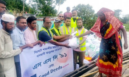গোলাপগঞ্জে গুড ডিডস ও এসএসসি `৯১ ব্যাচের ত্রাণ বিতরণ