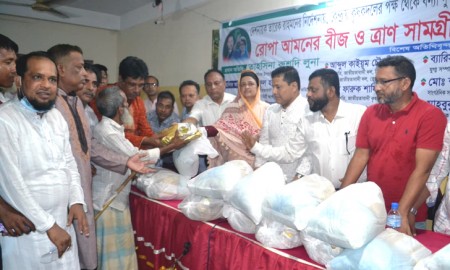 ফেঞ্চুগঞ্জে বন্যার্তদের মাঝে বারাকার ত্রাণ সামগ্রী বিতরণ