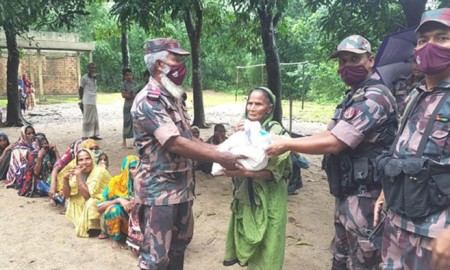 সীমান্ত এলাকায় ৬০০ পরিবারকে বিজিবির ত্রাণ সামগ্রী প্রদান