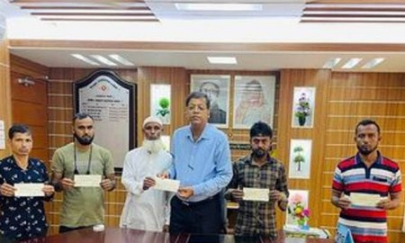 গোয়াইনঘাটে অগ্নিকাণ্ডে ক্ষতিগ্রস্থ পাঁচ ব্যবসায়ীকে আর্থিক অনুদান