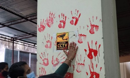 রক্তিম হস্ত ছাপে শাবিপ্রবি শিক্ষার্থীদের আন্দোলন অব্যাহত