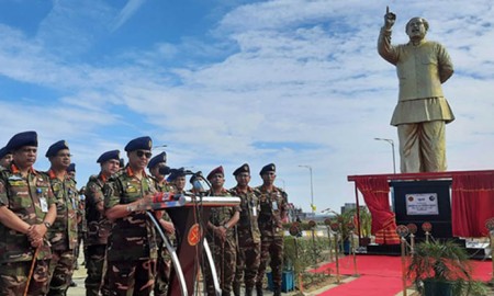সিলেট সেনানিবাসে বঙ্গবন্ধুর ভাস্কর্য ‘বজ্রকণ্ঠ’ উদ্বোধন করলেন সেনাপ্রধান