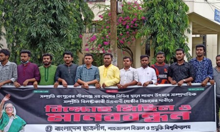 সাম্প্রদায়িক সহিংসতার প্রতিবাদে শাবিপ্রবি ছাত্রলীগের বিক্ষোভ-সমাবেশ
