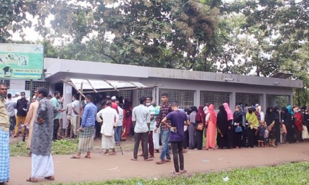 জকিগঞ্জে টিকা নিতে দীর্ঘ সারি, ভোগান্তি