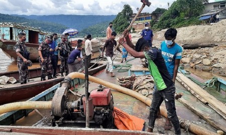 জাফলংয়ে বালুবাহী নৌযান আটক, জরিমানা