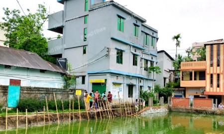 সিলেটের মণিপুরিপাড়ায় পুকুরের পাড় ধস, ঝুঁকিতে তিনতলা ভবন