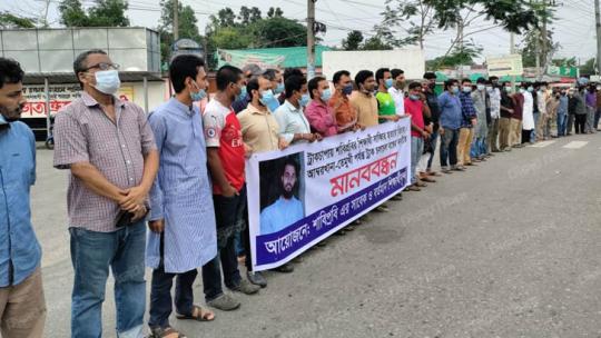 ট্রাকচাপায় শিক্ষার্থী নিহতের প্রতিবাদে শাবিপ্রবিতে মানববন্ধন