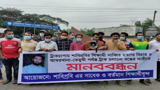 সাব্বির হত্যার বিচারসহ ৬ দফা দাবিতে শাবিপ্রবি শিক্ষার্থীদের মানববন্ধন