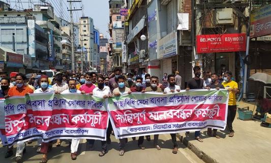ব্যবসা প্রতিষ্ঠান খুলে দেওয়ার দাবিতে নগরে বিক্ষোভ