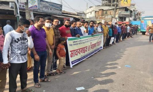 শাল্লায় হামলার প্রতিবাদে ওসমানীনগরে মানববন্ধন