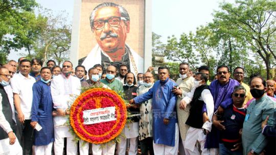 বঙ্গবন্ধুর প্রতিকৃতিতে সিলেট জেলা আওয়ামী লীগের শ্রদ্ধা নিবেদন
