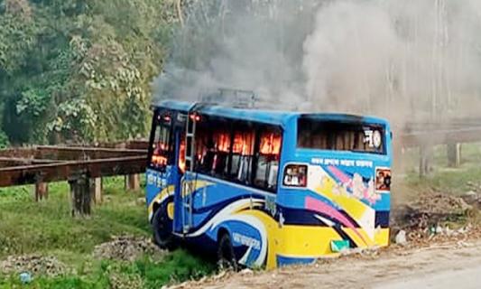 সড়কে গেল প্রবাসীর প্রাণ, বাসে জনতার আগুন