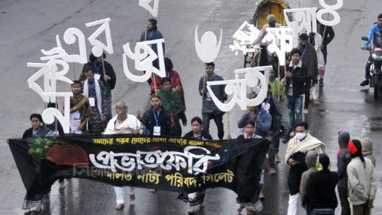 একুশের ভোরে সিলেটে নাট্য পরিষদের প্রভাত ফেরী
