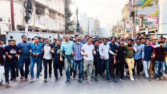 নগরে স্বেচ্ছাসেবক দলের বিক্ষোভ