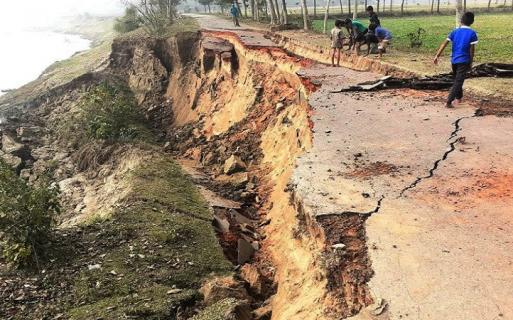 নদীভাঙনের কবলে সড়ক, বন্ধ যান চলাচল