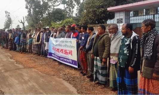 ওসমানীনগরে সড়কের কাজে অনিয়মের প্রতিবাদে মানববন্ধন