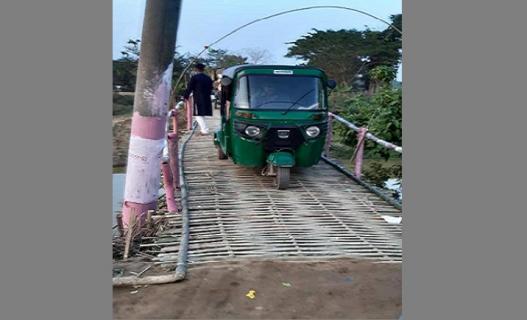 বিয়ানীবাজারে নিরুপায় মানুষকে ভরসা দিচ্ছে বাঁশের সাঁকো
