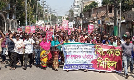 বকেয়া বেতনের দাবিতে সিলেটে চা শ্রমিকদের বিক্ষোভ