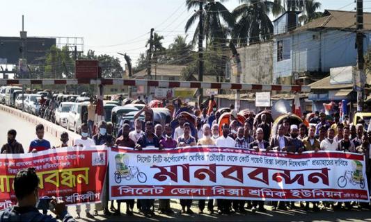 নগরে রিকশা মালিক শ্রমিকদের মানববন্ধন